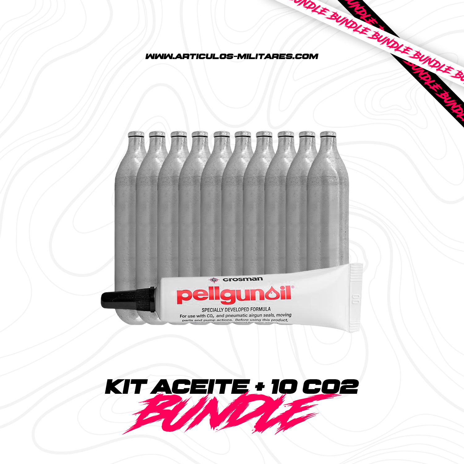 ::: QUE INCLUYE :::-Kit de Mantenimiento con 1 Aceite Pellgunoil y 10 CO2::: CARACTERÍSTICAS :::El Kit de Mantenimiento con Aceite Pellgunoil y 10 cartuchos de CO2 es la solución ideal para mantener el rendimiento óptimo de tu pistola de aire. Este kit incluye todos los elementos esenciales para asegurar que tu arma se mantenga en perfectas condiciones, permitiéndote disfrutar de una experiencia de disparo precisa y constante.- Aceite Pellgunoil: Formulado para ofrecer lubricación superior en las partes móviles de armas de aire, el aceite Pellgunoil es clave para reducir el desgaste, prevenir la oxidación y garantizar un funcionamiento suave. Es un producto indispensable para el cuidado a largo plazo de tu arma.- Cartuchos de CO2: Este kit incluye 10 cartuchos de CO2 de alta calidad, diseñados para proporcionar una potencia constante y fiable en cada disparo. Su compatibilidad con una variedad de pistolas de aire los convierte en una opción versátil para cualquier usuario.Este kit de mantenimiento ofrece una solución completa para quienes buscan mantener su pistola en las mejores condiciones de funcionamiento. La combinación de aceite Pellgunoil y cartuchos de CO2 asegura que tu arma funcione de manera óptima, reduciendo el desgaste y mejorando la precisión.Si deseas mantener tu pistola de aire en excelente estado y garantizar un rendimiento constante, este kit de mantenimiento con aceite Pellgunoil y cartuchos de CO2 es la elección perfecta.