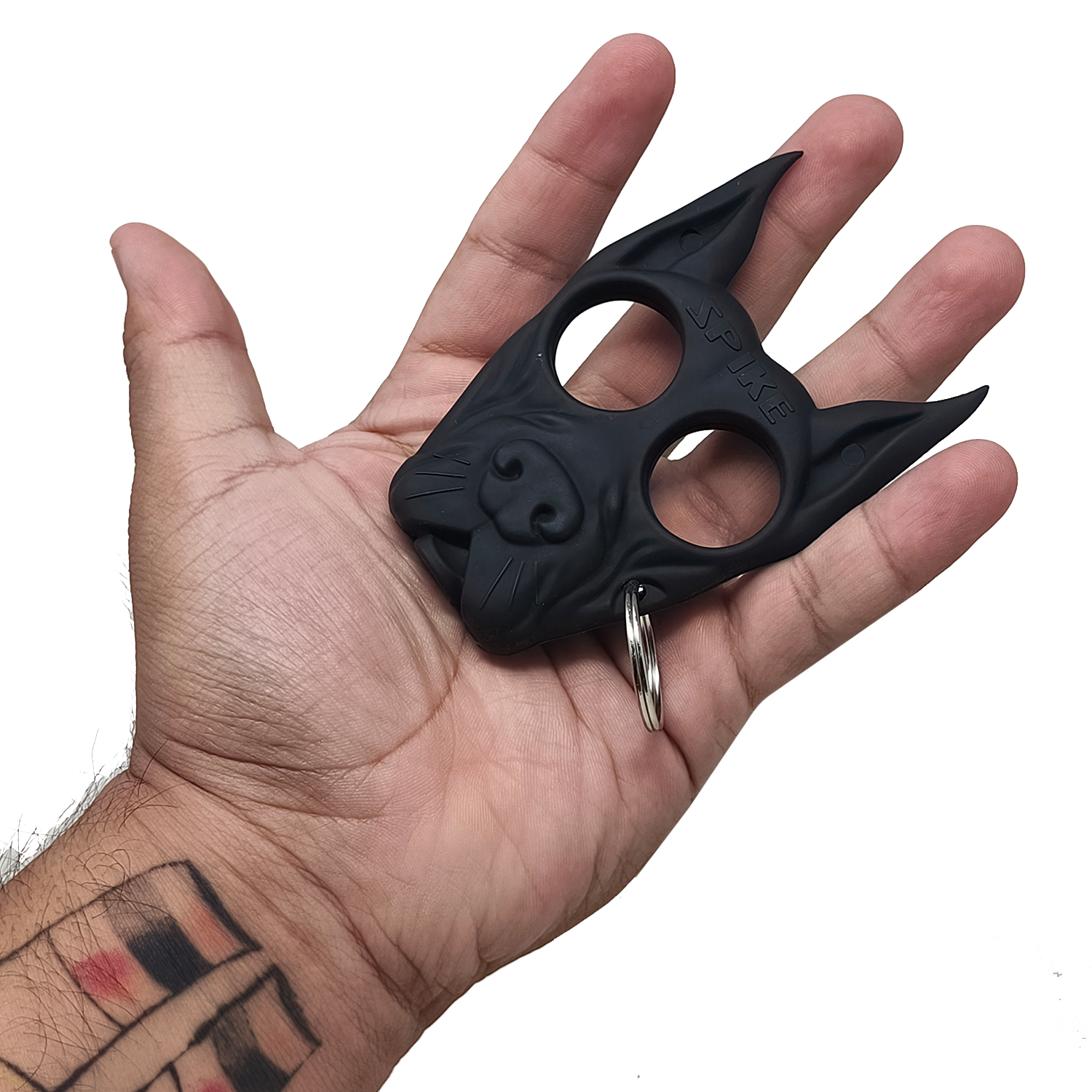 Su diseño ergonómico incluye dos puntas frontales estratégicamente colocadas para maximizar el impacto en situaciones de emergencia, proporcionando una defensa rápida y contundente. Además, incorpora un anillo funcional que permite usarlo como llavero, facilitando su transporte y asegurando que siempre lo tengas a mano cuando lo necesites.