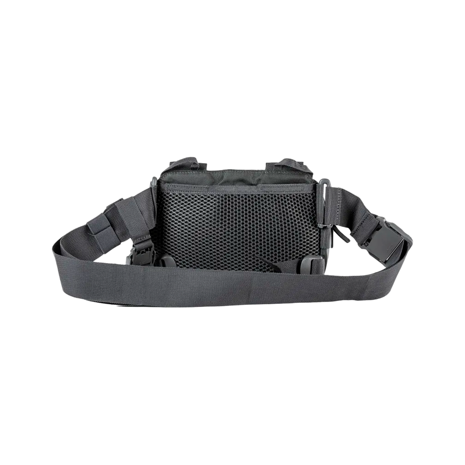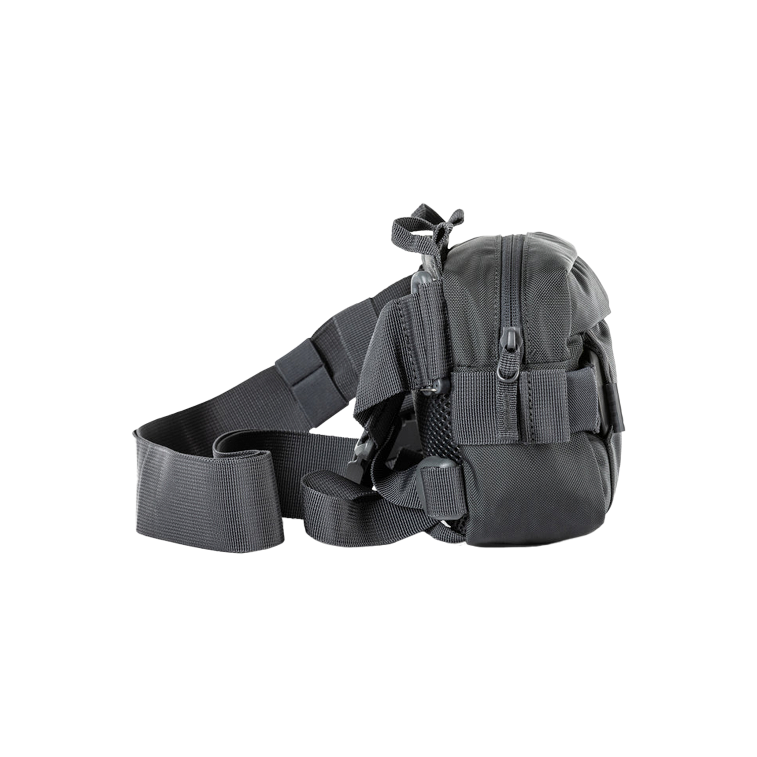 Además, se ha incluido una correa de cincha para la estabilización alrededor de la cintura o en el cuerpo para que pueda personalizarla según su misión. Dentro del bolsillo frontal con cremallera, hay un panel trasero con bucle y bolsillos de malla para organizar tu equipo. Un compartimento deslizable oculto entre el compartimento principal y la pared trasera, las correas de compresión laterales y un bolsillo trasero de malla hacen que esta versátil mochila sea ideal para cualquier operación.Diseño exclusivo Center Line™ de 5.11Bolsillo frontal con cremalleraCompartimento principal con panel posterior con trabillas y bolsillos de mallaCompartimento deslizante oculto entre el compartimento principal y la pared trasera con cierre de velcroBolsillo trasero de malla con cierre de velcroBucles de cincha superior e inferior para sujetar a la mochila LV18Portero extraíble con correa ajustable para el hombro para llevar en bandolera o en la cinturaCorrea de hombro/cintura de liberación rápidaCorrea de cincha adicional para estabilización de cintura o bandoleraCorreas de compresión lateralesLogotipos plegables para baja visibilidad.nailon 840D5.5" de alto x 8.5" de largo x 3.0" de profundidadCapacidad total de 183 pulgadas cúbicas / 3 litrosPeso 0,3 kg