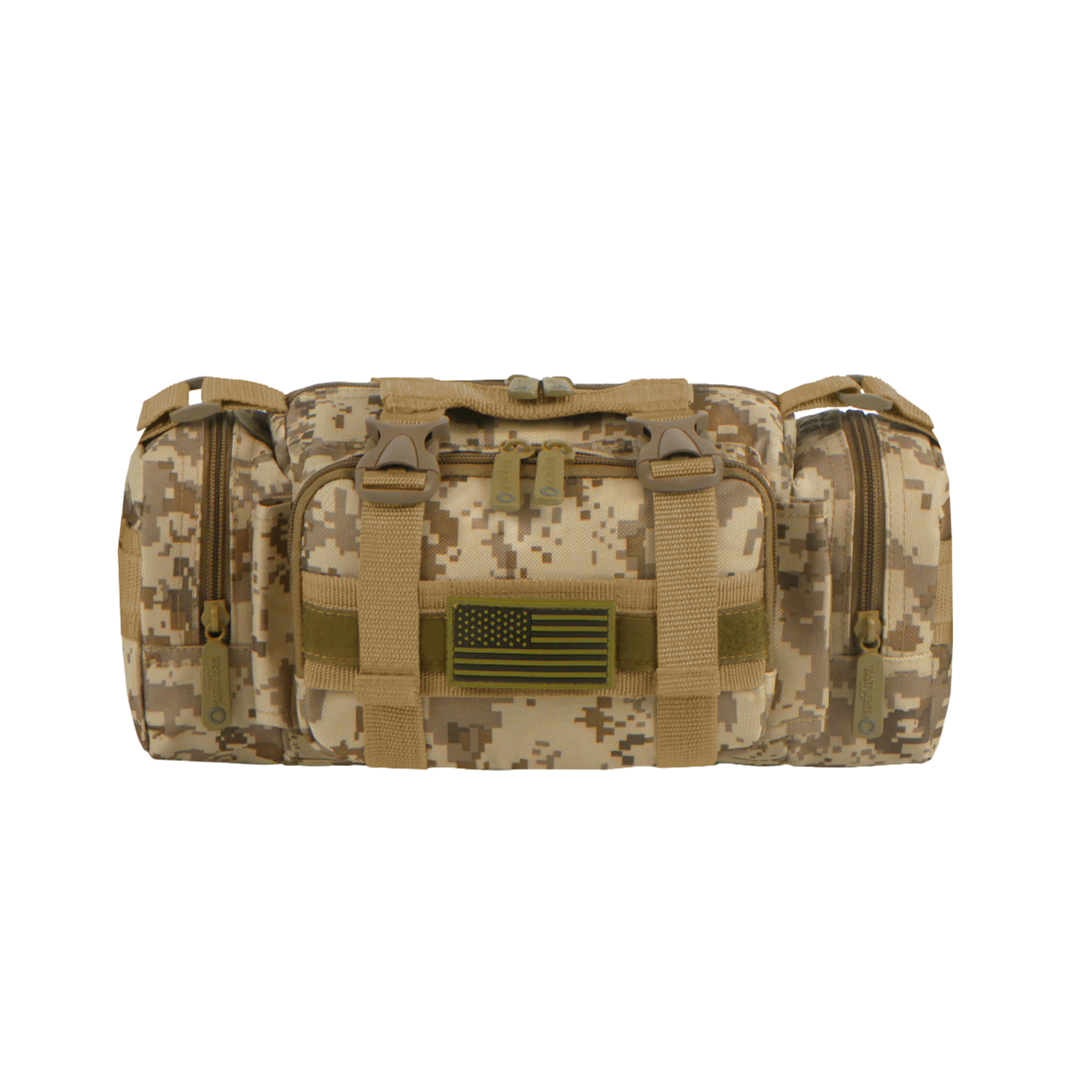 Sistema de expansión externa MOLLE diseñado para usarse en combinación con otros equipos para accesorios personalizadosCorreas ajustables y desmontables.Correas de compresión con hebillas en la parte superior.Correas con botones a presión en la parte posterior para accesorios MOLLE (acoplables y desmontables)Parche de bandera americana gratisTres bolsillos exteriores con cremallera con múltiples bolsillos interiores para almacenamiento organizadofabricada con materiales de alta calidad poliéster resistente 600D resistente al agua y tejidos duraderos, esta mochila no solo es visualmente atractiva, sino también resistente al desgaste y adecuada para resistir las condiciones del uso diario.Equipada con correas ajustables proporciona un confort excepcional durante largos períodos de uso
