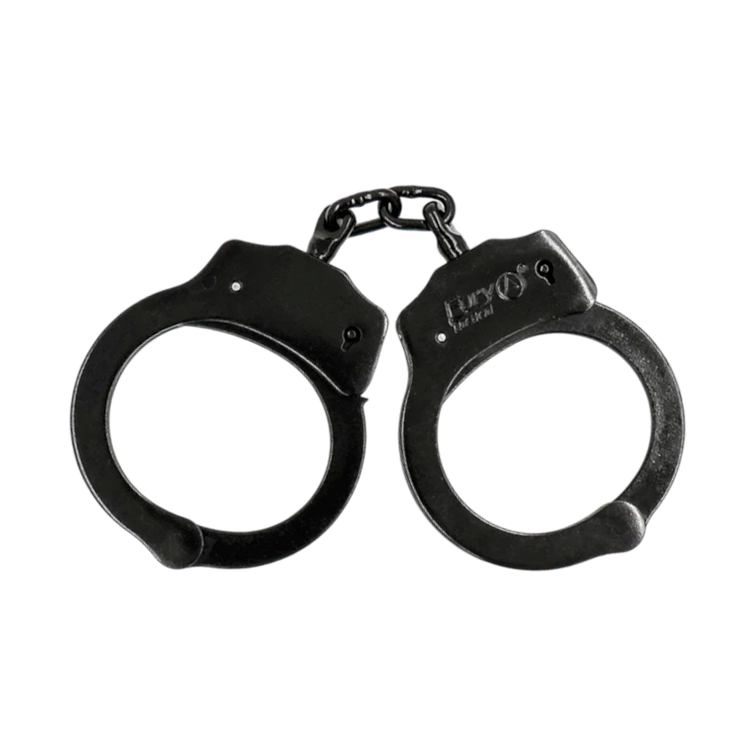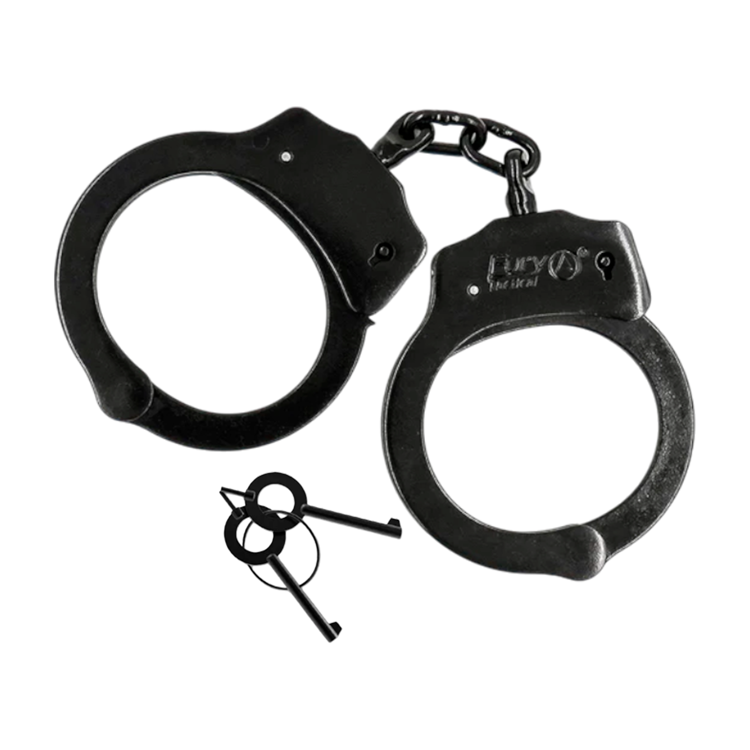Esposas Fury Pavonadas Negro ofrece beneficios profesionales excepcionales. Las esposas se fabrican con acero al carbono de la mejor calidad y su diseño sigue y excede especificaciones militares estadounidenses. Únicamente incluyen dos llaves y dos eslabones de color negro pavonado. Su calidad es inigualable y su precio imbatible. ¡Modelo Detective Tipo Militares!