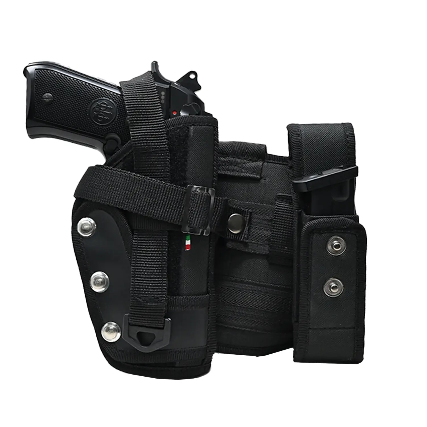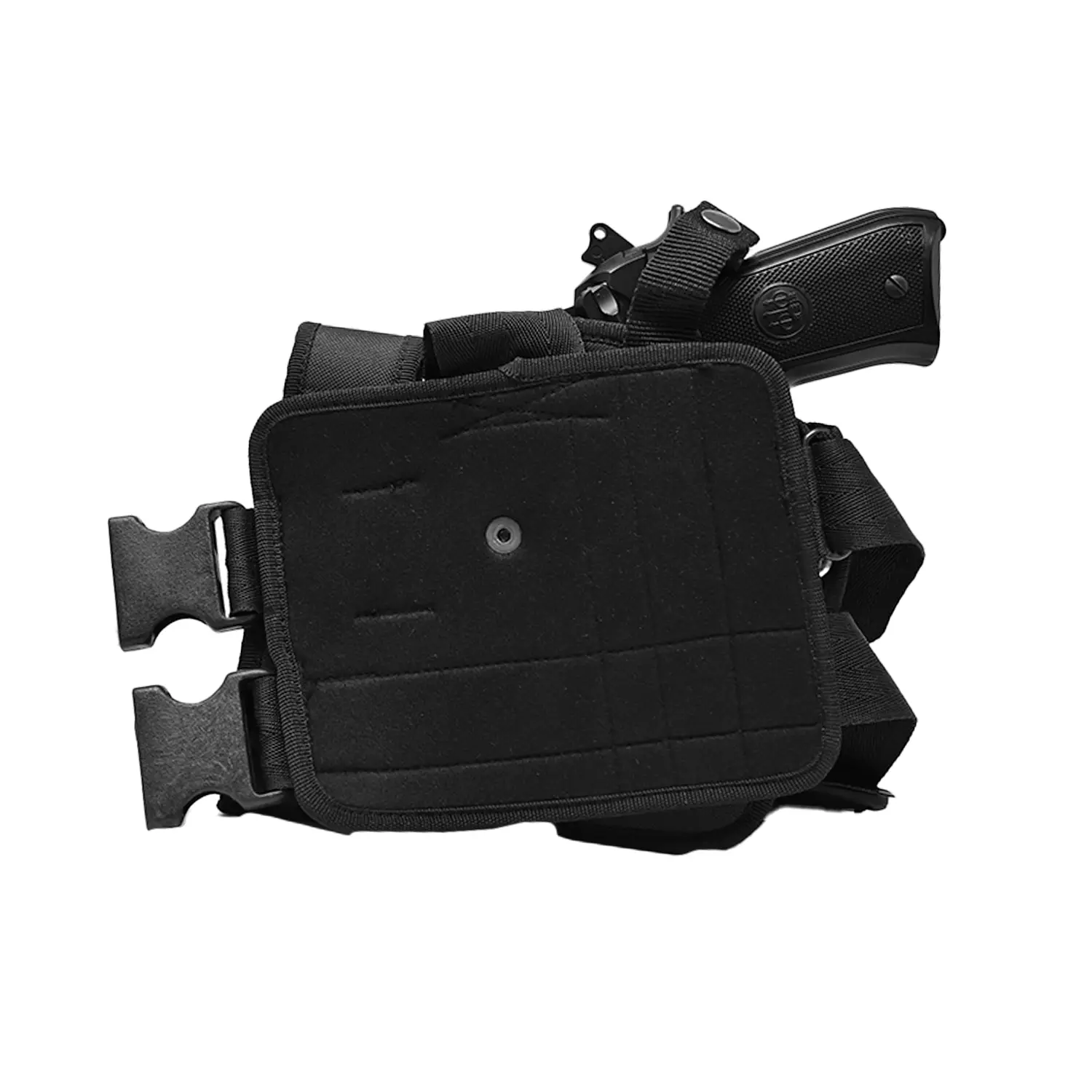 Esta funda para arma de color negro cuenta con correas ajustables para las piernas minimizan el movimiento y brindan la máxima comodidad.Ideal para militares, fuerzas del orden, cazadores, defensa personal, doméstica y más. ademas de tener una alta resistencia es ligera lo que facilita su transportación el seguro sencillo de accionar al mismo tiempo proporciona alta seguridad para su portador.