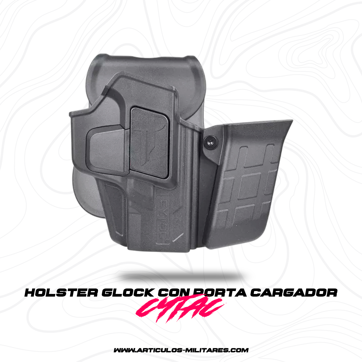 El holster para Glock 19, 23 y 32 con porta cargador CYTAC es la solución ideal para quienes buscan rapidez, seguridad y eficiencia en el porte del arma. Diseñado con polímero de grado militar, este modelo ofrece una resistencia superior a impactos, altas temperaturas y condiciones extremas, asegurando un rendimiento confiable en cualquier entorno.El sistema de retención automática mantiene el arma firmemente asegurada, permitiendo un desenfunde rápido y controlado con un solo movimiento. Su diseño ergonómico se adapta a la forma del cuerpo, garantizando un ajuste cómodo y estable durante el uso prolongado.Incluye un porta cargador integrado que permite llevar un cargador adicional de manera accesible, optimizando la capacidad de respuesta en situaciones tácticas o de defensa. Su mecanismo de ajuste en 360 grados facilita la personalización del ángulo de extracción, mejorando la comodidad y eficiencia en cualquier posición de uso.Compatible con diferentes plataformas de montaje, como cinturones tácticos y sistemas Molle, este holster se adapta a diversas configuraciones de equipo, brindando versatilidad en operativos, entrenamientos y uso diario.Si buscas un accesorio que combine durabilidad, funcionalidad avanzada y máxima seguridad, el holster para Glock 19, 23 y 32 con porta cargador CYTAC es la elección perfecta. No dejes pasar la oportunidad de optimizar tu equipo con un producto diseñado para un desempeño profesional.