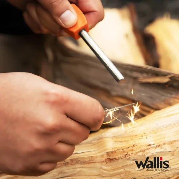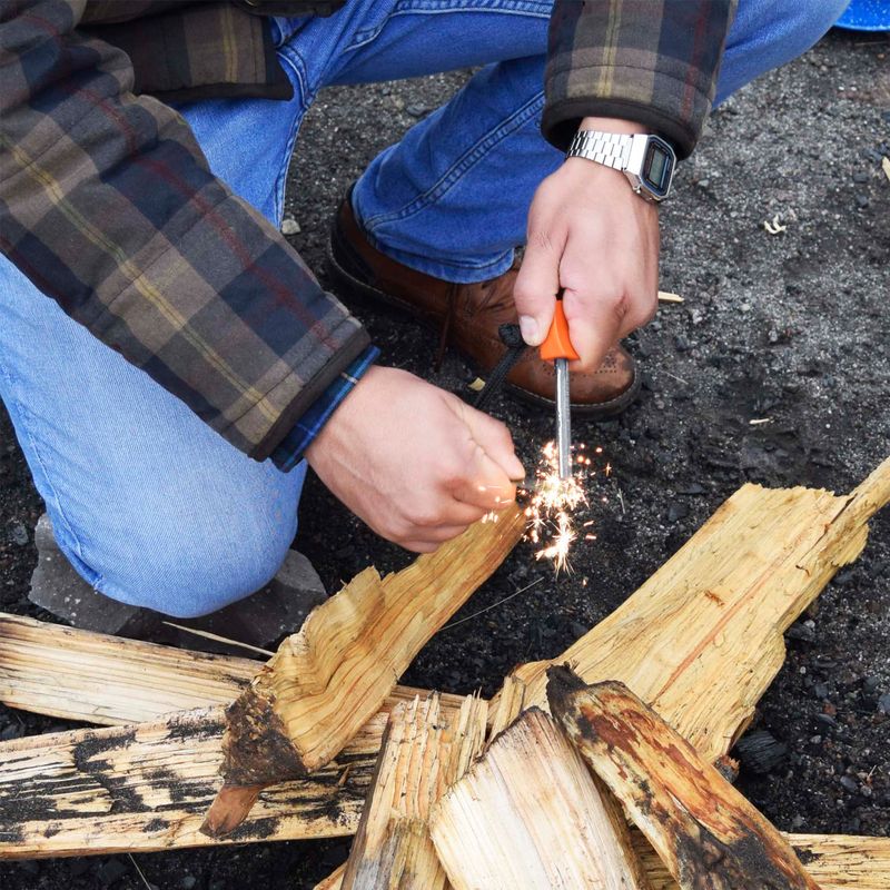 El pedernal es una herramienta esencial para las actividades relacionadas al campismo ya que en muchas ocasiones será necesario para hacer fuego. Puedes usarlo para cocinar, hervir agua y eliminar microorganismos nocivos para la salud, mantener el calor y alejar animales. La diferencia entre otras herramientas para hacer fuego es que el pedernal funciona bajo cualquier condición climatológica y es muy seguro de usar. Produce una chispa de 3000°C y proporciona más de 3000 encendidas. Simplemente tienes que rascar un par de veces la lamina de metal contra la varilla de silex para productir la chispa.