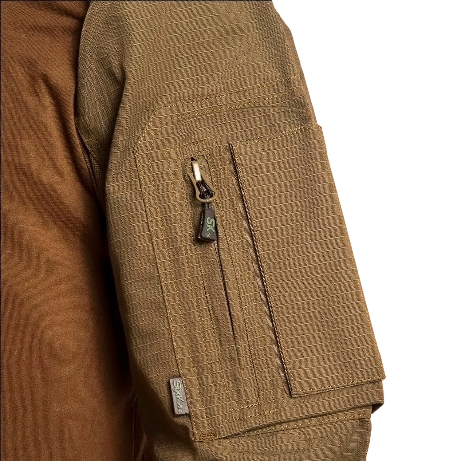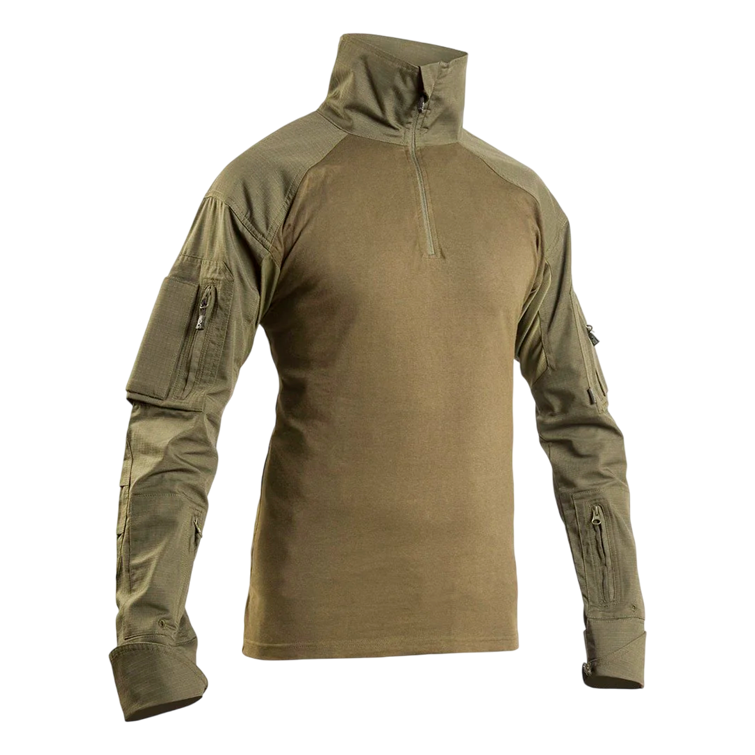 La camisa EON R 6K esta diseñada para usos tácticos y militares, por su combinación de telas Rip Stop antidesgarro 60/40 polyester /Algodón y 85/15 Nylon – Spandex. Es ideal para su uso por debajo del material balístico de protección personal.