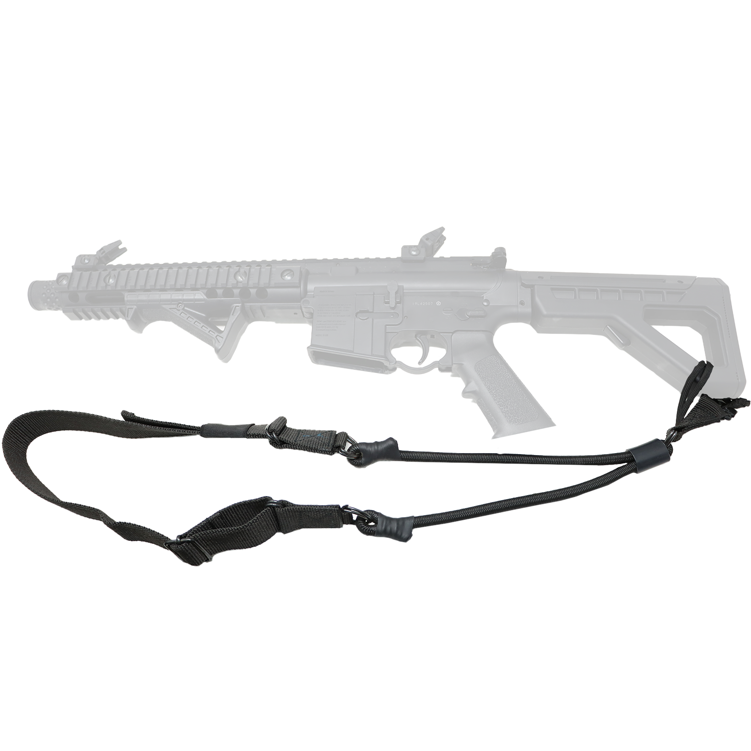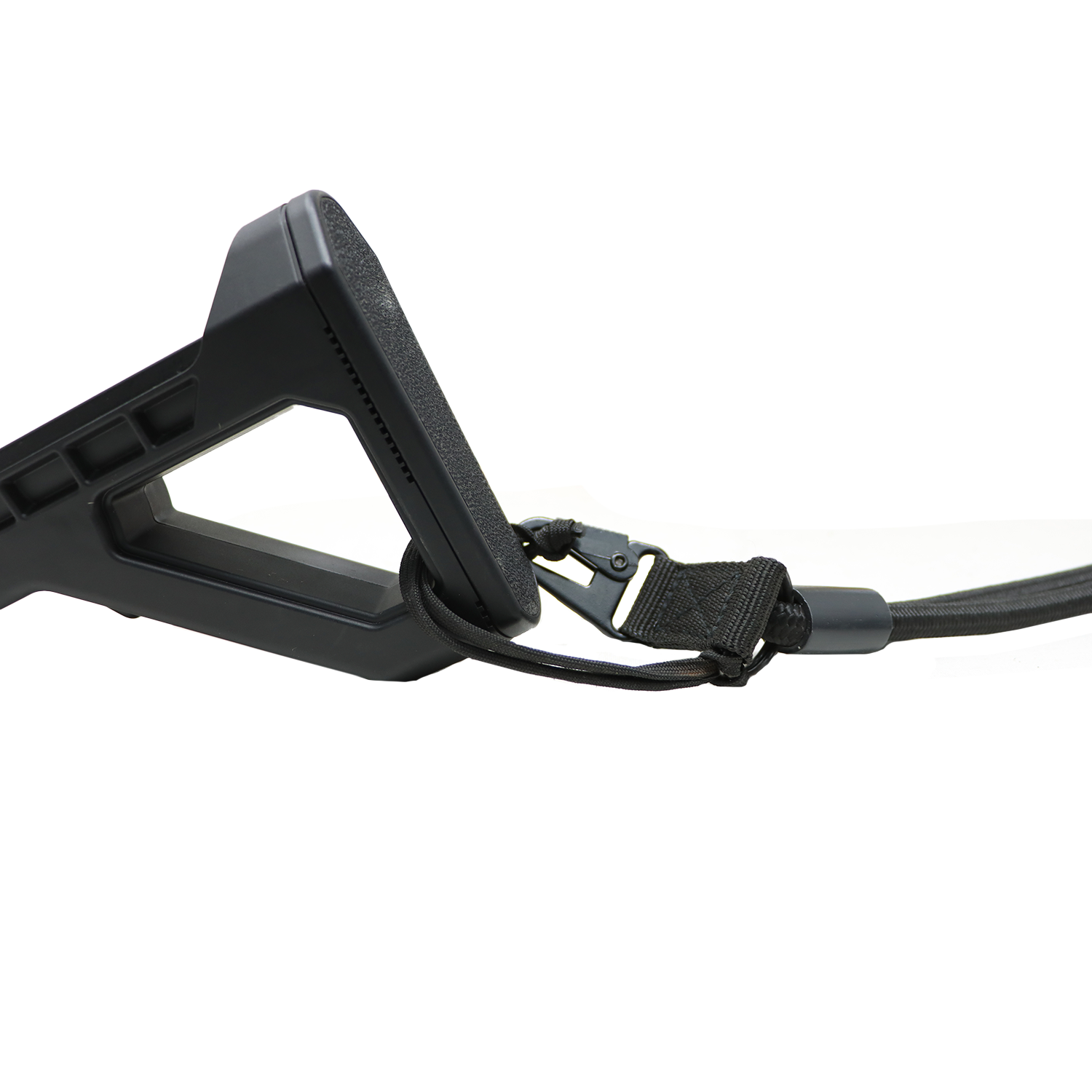 La liga de nylon que lo acompaña es un componente crucial que permite asegurar el fusil en su lugar, evitando cualquier movimiento indeseado durante el transporte. Esta liga se ajusta fácilmente, brindando una sujeción firme sin comprometer la rapidez o la accesibilidad al arma